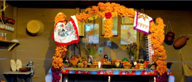 Para la celebración del uno de noviembre (dedicada a los muertos adultos), los altares se adornan con todos los elementos señalados, además de dulces de calabaza y chayote, frituras y caramelos comerciales. Ese día se cuelgan los ropajes en los arcos que rodean la mesa, y en el arco frontal se sujeta una cruz de madera también forrada con la flor de muerto.