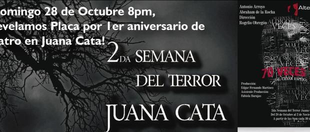 En un año, «Juana Cata» se ha convertido en referente de la actividad teatral en la Ciudad de México, y para celebrarlo el próximo domingo 28 de octubre se hará develación de placa a las 20 horas por parte de los padrinos Crisanta y Gustavo G. Suárez, de la Agrupación de Críticos y Periodistas de Teatro (ACPT).