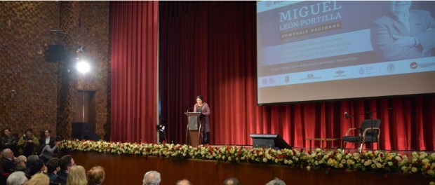 Miguel León Portilla, dijo, «es un ejemplo vivo de lo que la pasión y la entrega por el estudio pueden lograr», al tiempo que recordó los 16 doctorados honoris causa que el investigador ostenta, o bien las diversas publicaciones de su autoría como La filosofía náhuatl estudiada en sus fuentes (1963), Quince poetas del mundo náhuatl (1994) y Visión de los vencidos (1959), esta última traducida a más de 13 idiomas y que también ha sido adaptada al lenguaje braille.