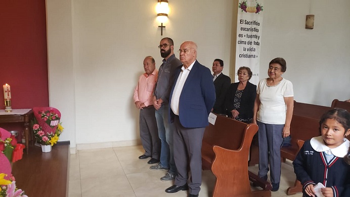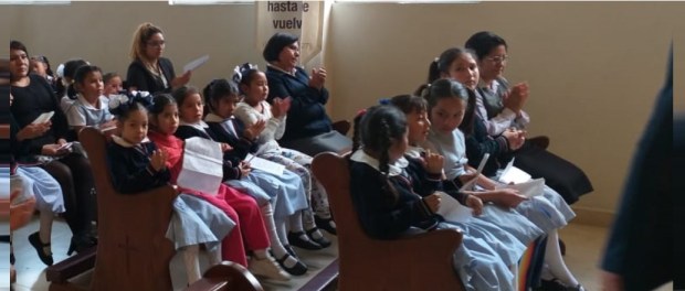 durante la misa en agradecimiento a la profesora por su importante donativo
