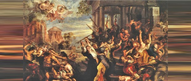 «Entonces Herodes, al ver que había sido burlado por los magos, se enfureció terriblemente y envió a matar a todos los niños de Belén y de toda su comarca, de dos años para abajo, según el tiempo que había precisado por los magos. Entonces se cumplió el oráculo del profeta Jeremías: ‘Un clamor se ha oído en Ramá, mucho llanto y lamento: es Raquel que llora a sus hijos, y no quiere consolarse, porque ya no existen’. Evangelio de Mateo 2, 16-18».