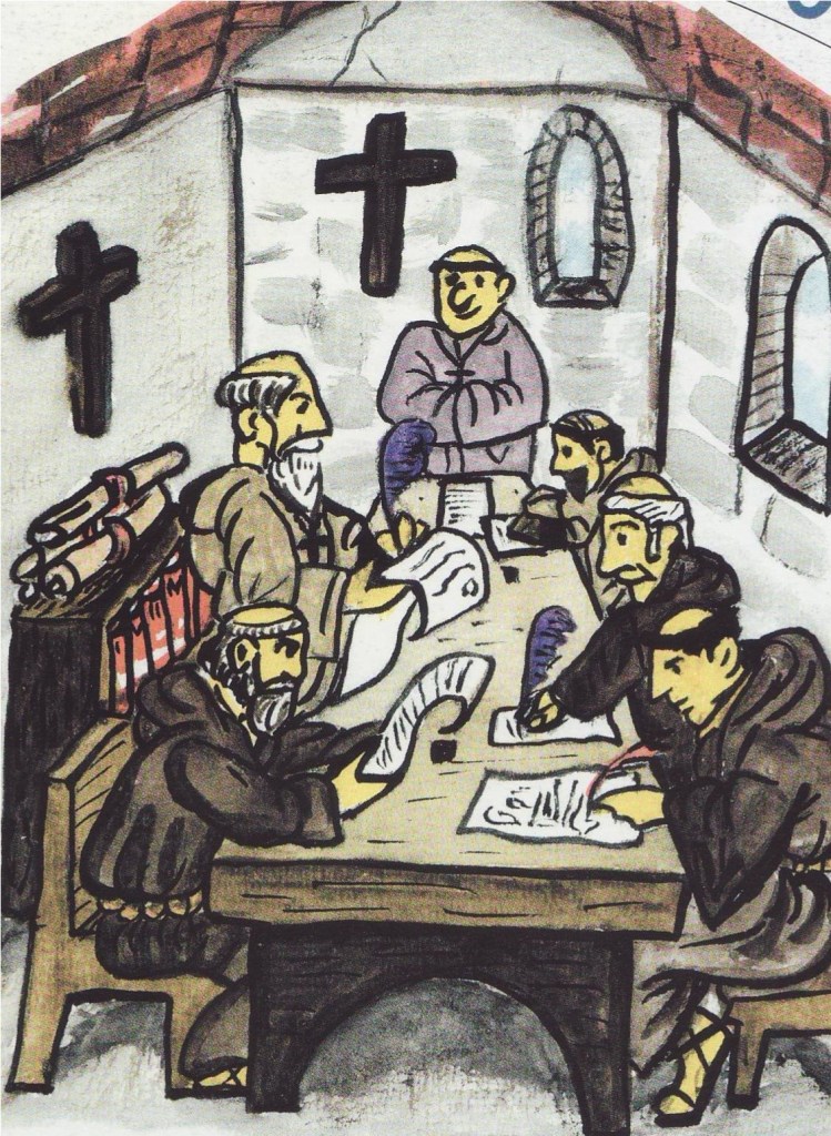 En la Europa de comienzos de la edad media, eran los monjes quienes escribían los libros, ya fuera para otros religiosos o para los gobernantes del momento. La mayor parte de ellos contenían fragmentos, aunque muchos eran copias de textos de la antigüedad. Estos monjes medievales se interesaron también en la elaboración de nuevos compuestos químicos para perfeccionar la fabricación de tintas.