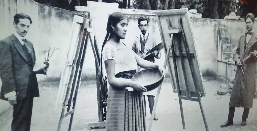 Damos inicio con el maestro Diego María de Rivera. Viaja por Italia para estudiar la técnica al fresco y vuelve a México en 1921 para trabajar en el mural La Creación en el Antiguo Colegio de San Ildefonso. Elabora más de tres mil 300 obras de caballete y realiza más de 30 mil metros cuadrados de pintura mural en edificios públicos y privados. Desde su primer mural hasta el realizado en el Cárcamo del Río Lerma en 1950, Luz Jiménez fue su modelo prototipo para representar a la mujer indígena activa y presente en las luchas populares.