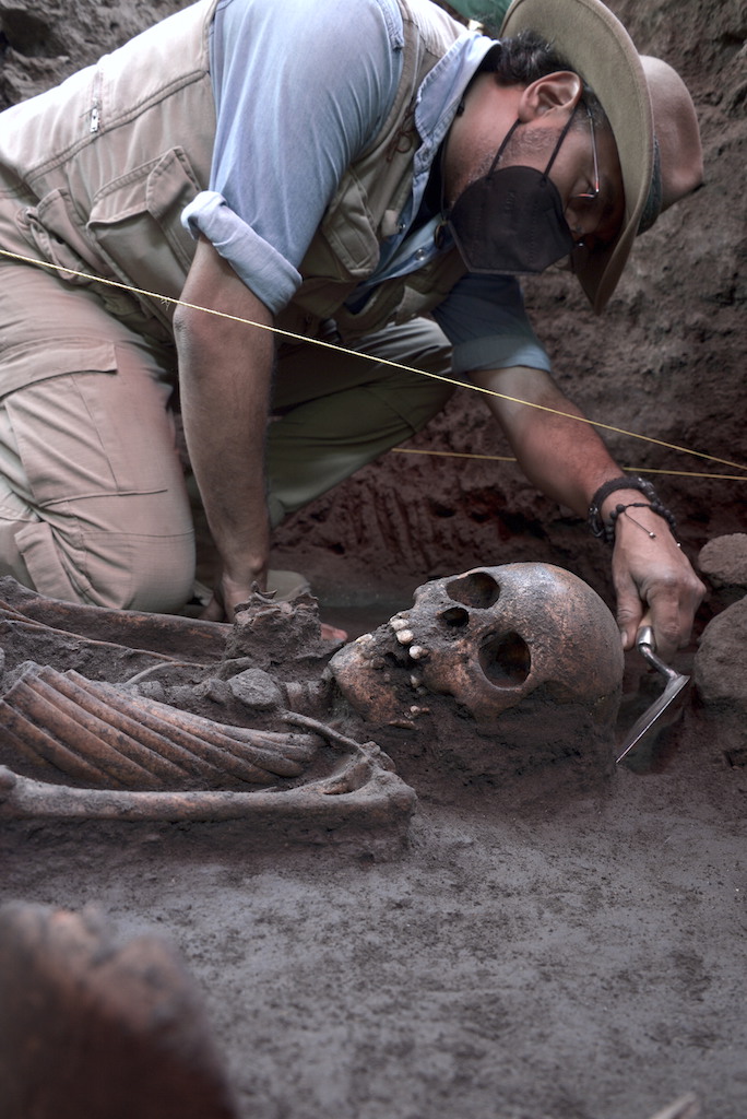 Lo llamativo, comentó Hussein Amador, es que los dos entierros del periodo Colonial Temprano ya fueron depositados de forma extendida, es decir, a la usanza cristiana, pero a la altura de sus hombros se les dispuso la clavícula de otras osamentas que fueron removidas, a modo de ofrenda. Esto, y el que fueran inhumados en su hogar, revela que la transición a la práctica funeraria cristiana fue paulatina, persistiendo ciertas ideas de la cosmovisión mesoamericana.