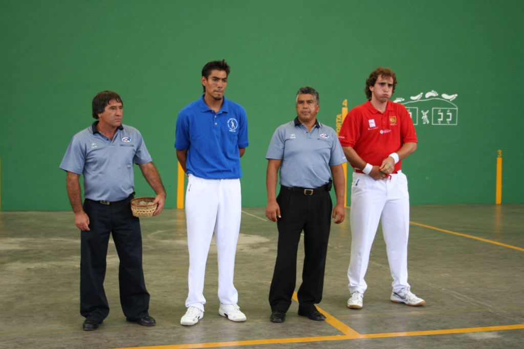 Posteriormente, y también para enfrentarse en la modalidad de dobles, saltaron a la cancha Juan Sandoval y Antonio Medina, por parte del Club Deportivo de San Juan Ixtayopan, y Mike Ehaide y Josu Oreja por parte del Club Oberena. El juego desde un principio estuvo muy parejo, pero fueron más los aciertos de los jóvenes locales que pintan para retomar la estafeta de quienes los precedieron como Fernando el Quilla Medina, Carlos Calderas Vallejo la Momia, o el Matías Jiménez Ríos, y que finalmente se impusieron por 18–6.