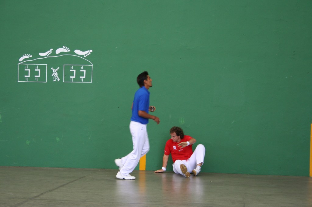 A continuación vino el encuentro estelar de la tarde, el que acaparó la atención de los apostadores y que puso a los mexicanos como favoritos. Después de todo se trataba del Momo, Fernando Medina, y José Alfredo Medina, contra Álvaro Okiñena, campeón del mundo amateur de su especialidad (y quien nunca quiso brincar al profesionalismo) y Alberto Olangua. Sin embargo, continuos yerros de José Alfredo atrás y un juego poco consistente del Momo dieron la victoria a los ibéricos por 22 a 17.