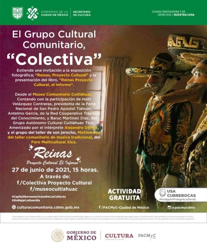 De ese modo, Rachel Nava, Anabell Luna y Alejandro Dávick formaron el Grupo Cultural Colectiva y nació Reinas, Proyecto Cultural, cuyo objetivo era realizar un libro de imágenes y entrevistas que sería distribuido de forma gratuita en los diversos espacios culturales de la Alcaldía Tláhuac, durante un periodo de seis meses, a través de un ciclo de exposiciones itinerantes de fotografías, amenizadas por canciones en lenguas mexicanas.