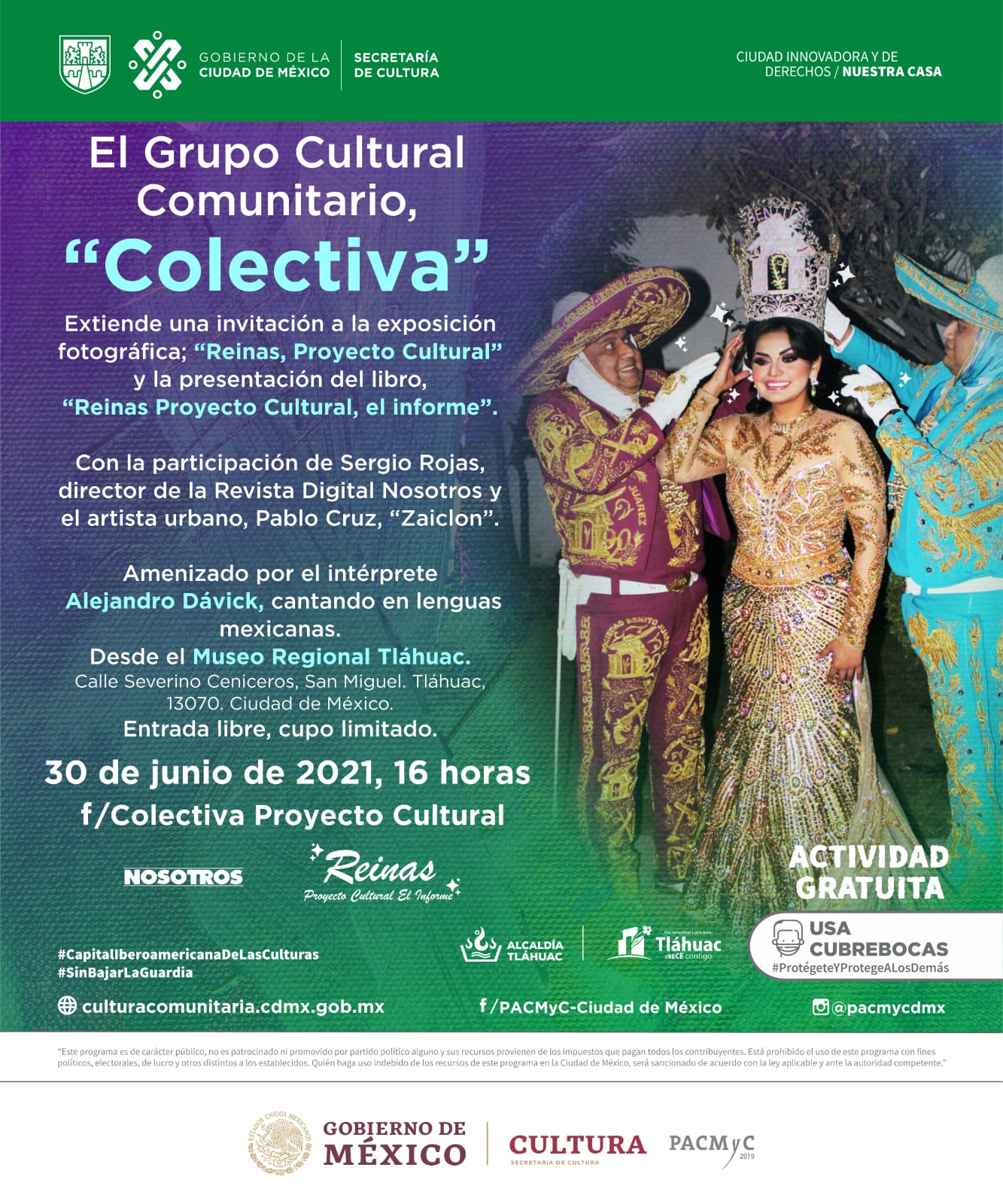 De ese modo, Rachel Nava, Anabell Luna y Alejandro Dávick formaron el Grupo Cultural Colectiva y nació Reinas, Proyecto Cultural, cuyo objetivo era realizar un libro de imágenes y entrevistas que sería distribuido de forma gratuita en los diversos espacios culturales de la Alcaldía Tláhuac, durante un periodo de seis meses, a través de un ciclo de exposiciones itinerantes de fotografías, amenizadas por canciones en lenguas mexicanas.