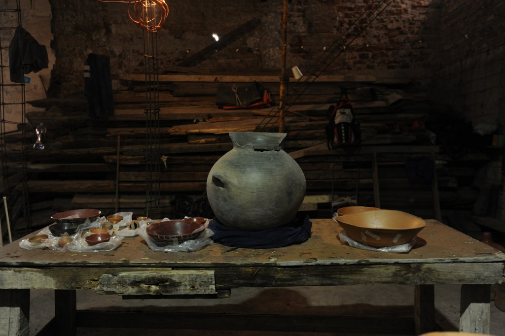 La disposición, cantidad y calidad de los materiales que componían esta ofrenda de clausura concuerda con ese carácter sagrado: 13 sahumadores, una copa pulquera de base trípode, cinco cajetes, un plato y una olla de cuerpo globular sobre la que colocaron cuatro vasijas a modo de tapa. En el interior de esta última se detectaron restos óseos cremados —una costumbre funeraria extendida en el mundo mesoamericano—, posiblemente de un infante; sin embargo, esto habrá de comprobarse mediante la microexcavación de las cenizas.