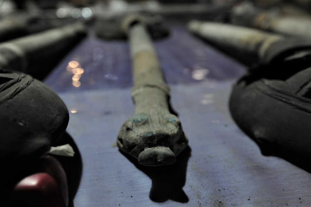 «Por otra parte –abundó Becerra–, el conjunto de 13 sahumadores expresa un simbolismo particular, ya que fueron dispuestos en dos niveles y en dos orientaciones distintas: unos en sentido este-oeste, y otros en dirección norte-sur, como una evocación de las 20 trecenas que conformaban el tonalpohualli, el calendario ritual mexica de 260 días; asimismo, cabe mencionar que el número 13 aludía a los niveles del cielo».