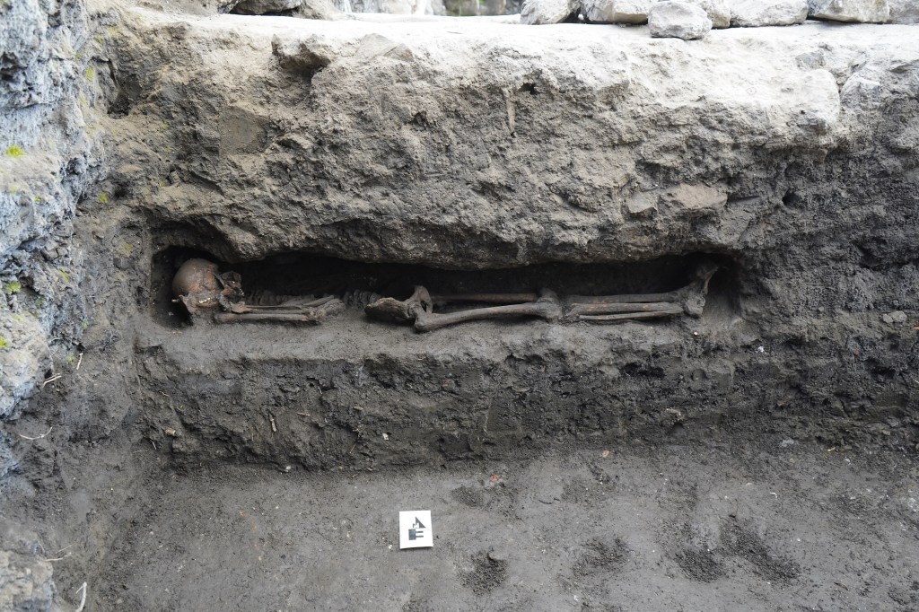 Otro descubrimiento fue el de un entierro del siglo XVI, correspondiente a un individuo adulto (de entre 18 y 25 años), el cual revela un sistema de enterramiento que combina la usanza española e indígena, indicativo de un cambio en el sistema de creencias. Si bien el cuerpo fue depositado en una fosa en posición cristiana, amortajado y de manera extendida, el que fuera colocado por debajo de uno de los acueductos, demuestra que persistían ciertas costumbres funerarias de tradición mesoamericana.