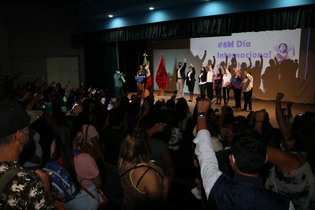 La maestra de educación básica subrayó que las mujeres «generamos cohesión de clase, de etnia, como los que realizamos en nuestros centros de trabajo, son una expresión de la fuerza y el poder que tenemos los sectores populares organizados».