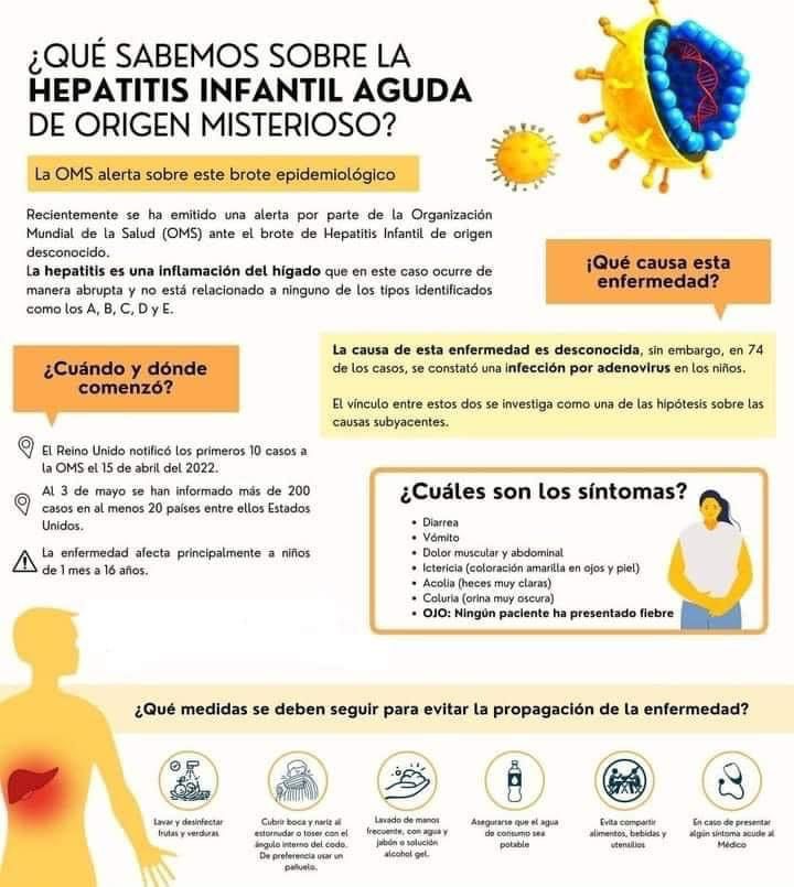 A partir de esa fecha alrededor del mundo hay 300 casos en países como España, Israel, Dinamarca, Irlanda, Países Bajos, Italia, Noruega, Francia y Estados Unidos. La OMS informó el martes que se registraron 348 casos probables de una misteriosa variante de hepatitis que afecta especialmente a niños y que se aceleraron los estudios sobre su posible vinculación con el adenovirus y la infección por Covid-19. ♦
