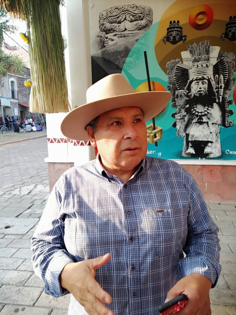 «Antes de que hubiese día en el mundo, se juntaron los dioses en Teotihuacan y Nanaoatzin accedió a ser quien alumbrara y le tocaron la cabeza con amatzontli (papel) y le pusieron una estola de papel y maxtli de lo mismo», relató.