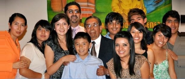 Pie de foto: El doctor Benjamín Roque al centro, posa con sus nietos durante un reconocimiento que se le hizo en el Teatro Miquiztli en 2011