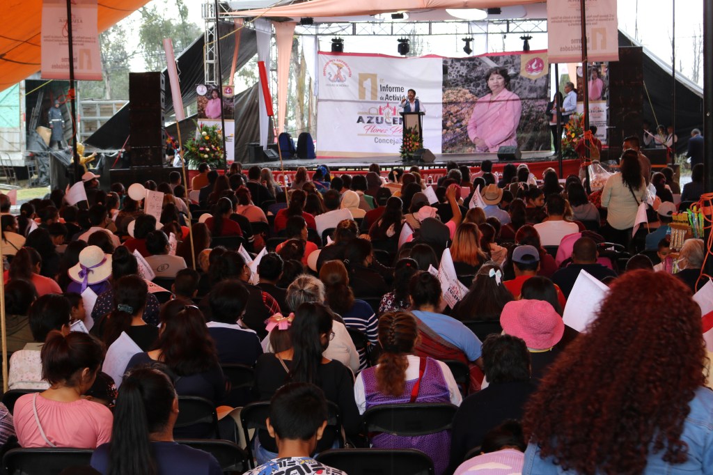 Previamente, en su informe resaltó el trabajo que lleva a cabo como luchadora social, sin abandonar sus tareas en la concejalía donde continúa activamente con programas como venta de canasta básica a precio de recuperación, talleres de inglés para niños, talleres de danza, clases de regularización, proyección de películas infantiles en San Andrés Mixquic, limpia y mejoramiento de unidades habitacionales y apoyo con pipas de agua a las familias más necesitadas de la demarcación.