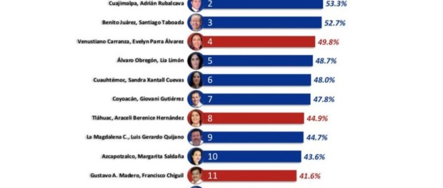 El primer lugar de la evaluación del trabajo de alcaldes lo tiene Clarfa Brugada, de Iztapalapa, con 58.6 por ciento. ♦
