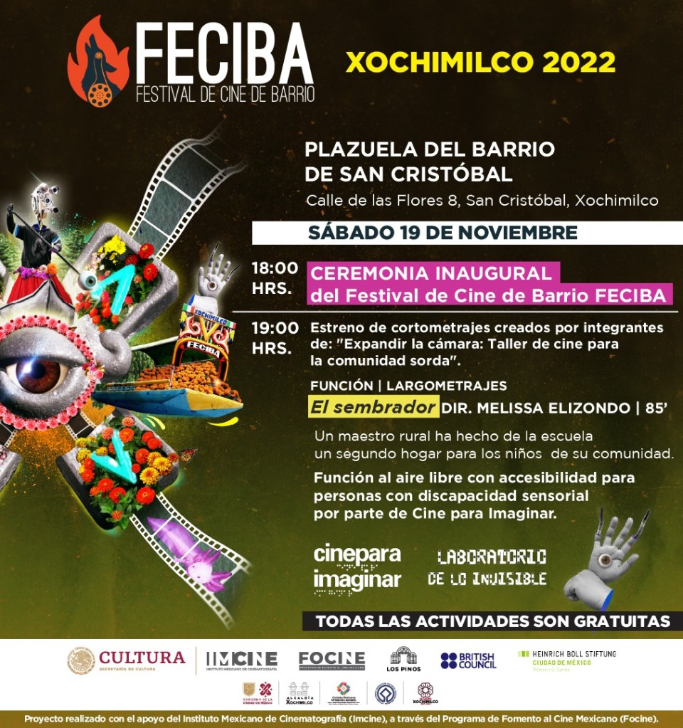 El Festival de Cine de Barrio (Feciba) en su cuarta edición se llevará a cabo a partir de mañana 19 de noviembre en la alcaldía Xochimilco, con una selección de cuatro largometrajes y seis programas de cortometrajes en torno a ídolos e historias de barrio.