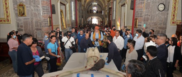 Ecatepec de Morelos, Edomex.- Música de mariachi y cohetones anunciaron por lo alto la llegada del Cristo Divino Redentor a Santo Tomás Chiconautla, el cual se ausentó de su comunidad para recibir tratamientos de conservación y restauración, luego de una mala intervención que lastimó severamente su capa pictórica.