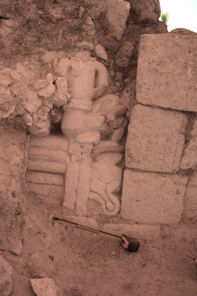 Temozón, Yuc.- En la Acrópolis de la Zona Arqueológica de Ek’ Balam arqueólogos del Instituto Nacional de Antropología e Historia (INAH) descubrieron nueve cuartos de elite que, a su vez, preservan fachadas con decorados en estuco en los que sobresalen figuras de captores y cautivos de la antigüedad.