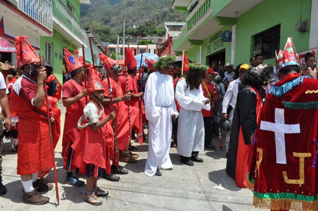 Amatenango de la Frontera, Chis.- Las manifestaciones relacionadas con la Semana Mayor en poblaciones fronterizas como El Pacayal, Chiapas, ubicada a unos cuantos kilómetros del límite con Guatemala, se convierten en un desfile de singulares personajes que anuncian los ritos conmemorativos de la pasión y muerte de Jesús.