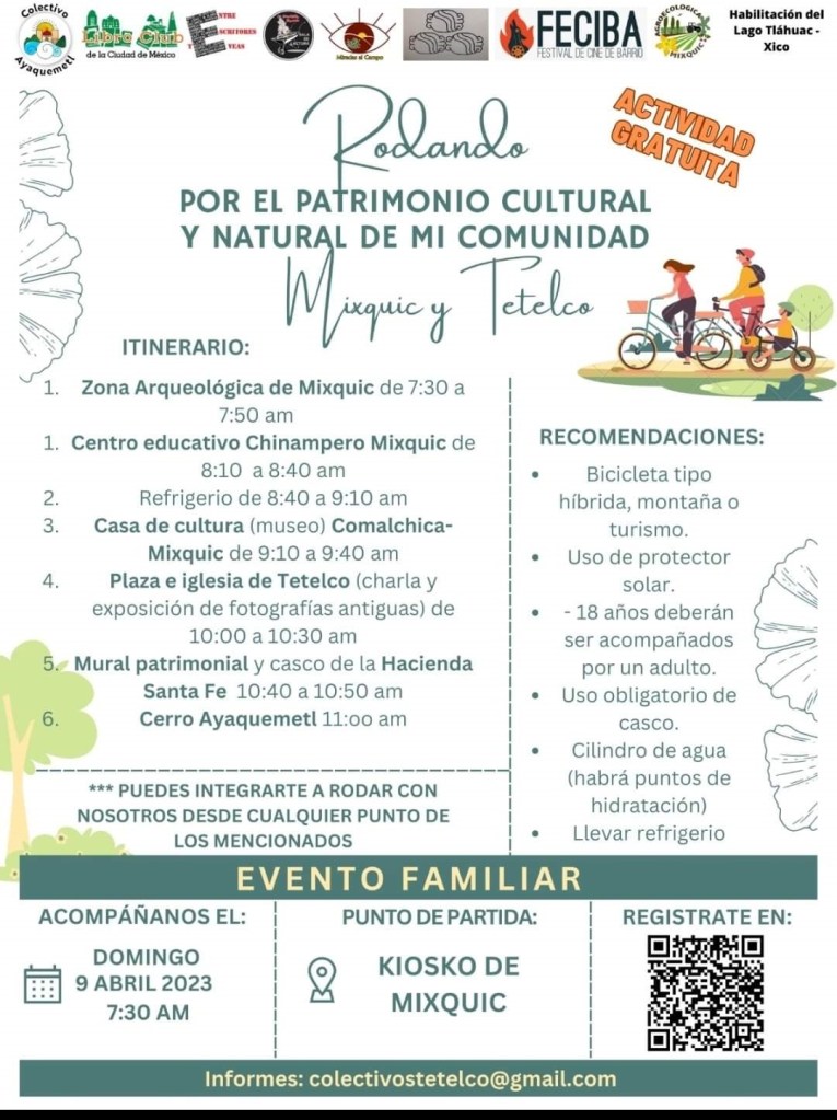 Rodando por el Patrimonio Cultural y Natural de mi Comunidad comprenderá un trayecto por dos pueblos de la demarcación: Mixquic y Tetelco.
