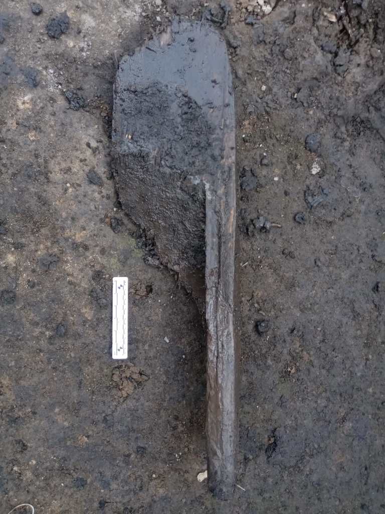 Cabe destacar que además de estos vestigios, en el predio se localizó también la parte distal de una canoa monóxila de aproximadamente un metro de longitud, y fragmentos circulares de lo que probablemente sea el extremo proximal de un remo de madera.