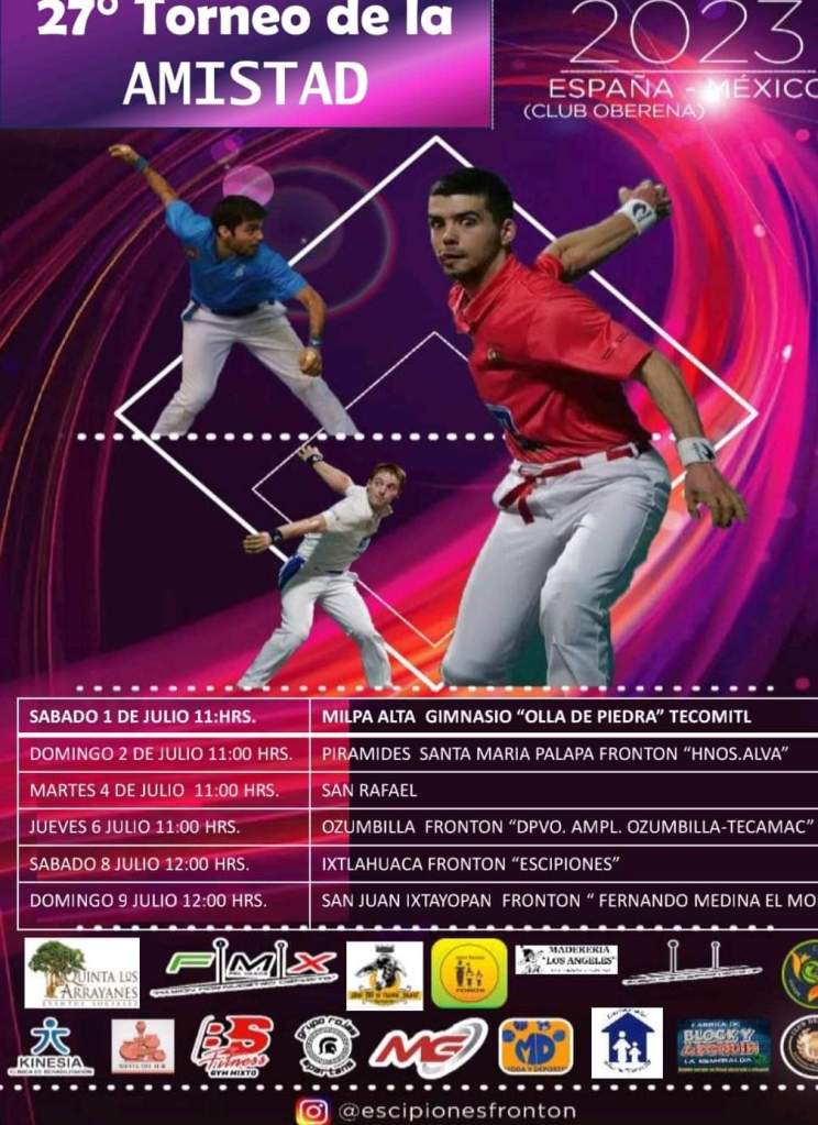 Este fin de semana dará inicio la XXVII edición del Torneo de la Amistad de Pelota Vasca entre pelotaris del Club Ixtayopan de México y el Club Oberena de Pamplona, España.