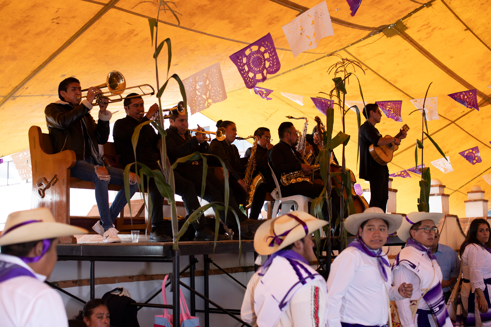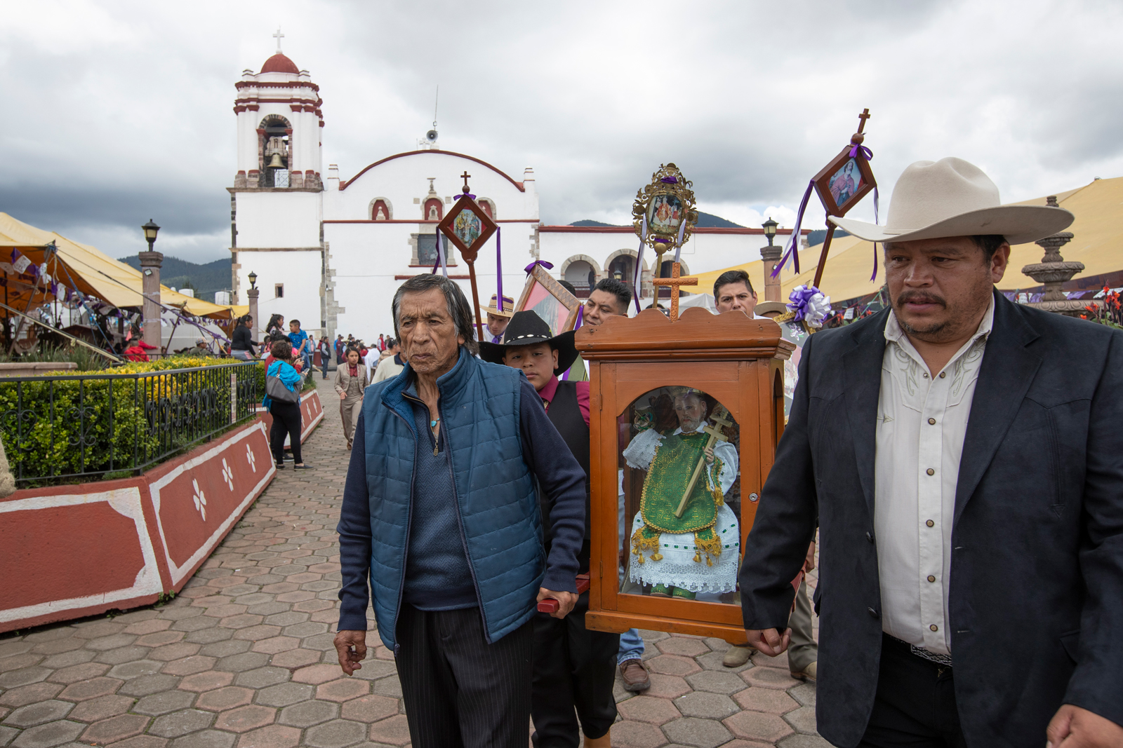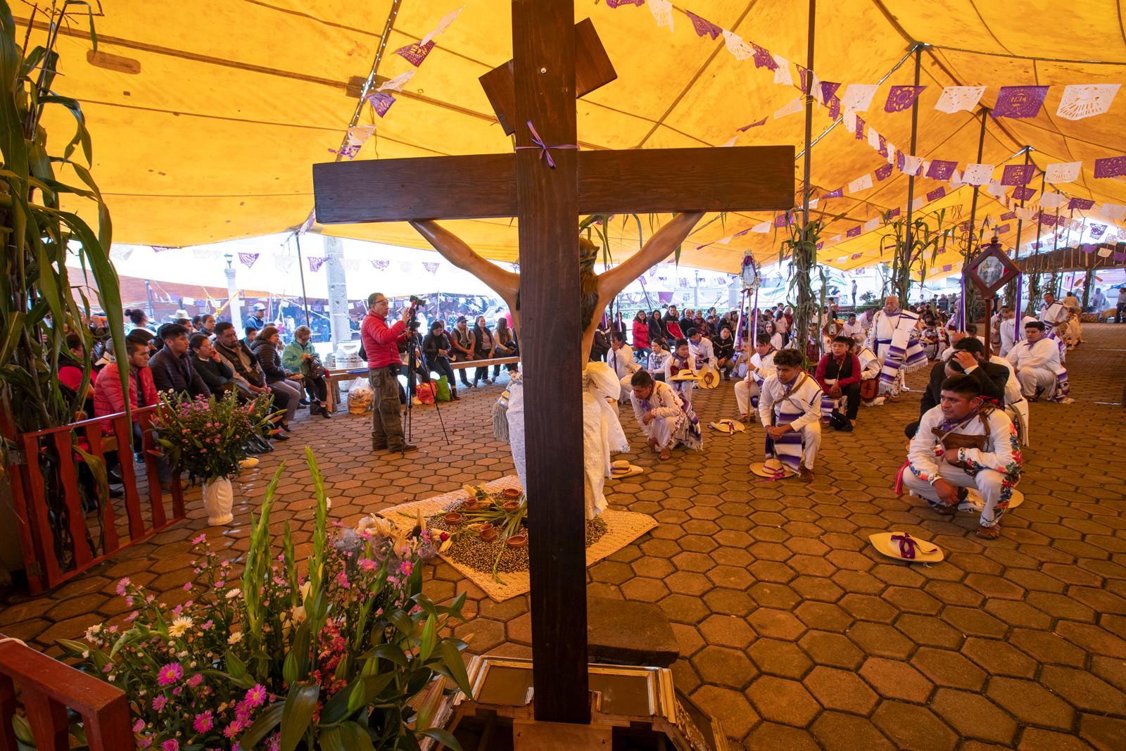 Elementos como el incienso, las semillas de maíz, fruta y tortillas se mezclan con el Cristo, al son de las melodías que ejecutan los músicos del pueblo, las cuales comenzaron, como cuenta el cronista del pueblo, Alfredo Núñez Callejo, con una guitarra y un violín, para pasar a la pequeña orquesta con trompetas, saxofones, tuba y la batería, como la conocemos hoy en día.