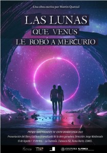 ¿Has vuelto a sentir tanto amor como el que sentiste cuando te enamoraste por primera vez? Esta pregunta es la premisa del libro Las lunas que Venus le robó a Mercurio, escrita por Martín Quetzal, ganadora del Premio Independiente de Joven Dramaturgia 2022.