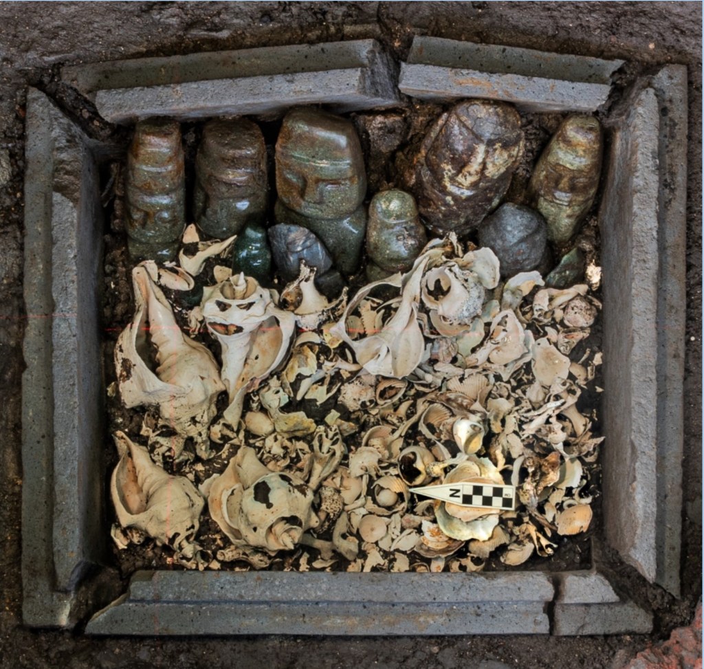 «En náhuatl clásico, estos cofres eran conocidos como tepetlacalli –de tetl, piedra, y petlacalli, caja de petate–. En sus hogares, los mexicas acostumbraban guardar en cofres de petate sus más preciadas pertenencias, como plumas finas, joyas o prendas de algodón, y si lo vemos desde el Templo Mayor, que representa a una montaña sagrada repleta de mantenimientos, podemos imaginar a los sacerdotes almacenando en estas ‘petacas de piedra’ los símbolos por excelencia del agua y la fertilidad: esculturas de los dioses de la lluvia, cuentas de piedra verde, conchas y caracoles», explicó López Luján. ♦