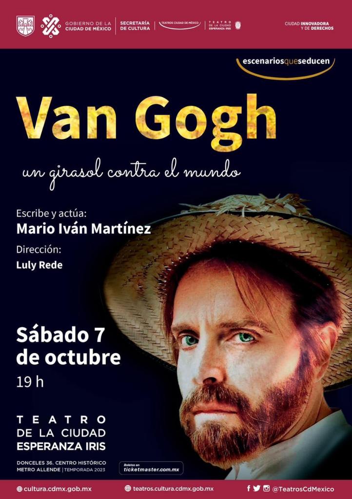 «Van Gogh, un girasol contra el mundo», se presentará el sábado 7 de octubre a las 19:00 horas en el Teatro de la Ciudad Esperanza Iris (Donceles 36, Centro Histórico, cerca del Metro Allende).