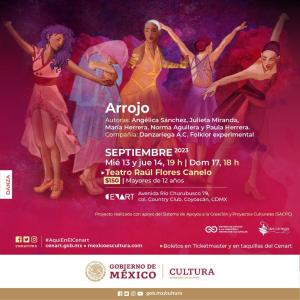 Arrojo se presenta el miércoles 13 y jueves 14 de septiembre a las 19 horas, y el domingo 17 de septiembre a las 18 horas, en el Teatro «Raúl Flores Canelo», del Centro Nacional de las Artes en la Ciudad de México, con un costo de $150. Boletos disponibles en taquilla y ticketmaster. ♦