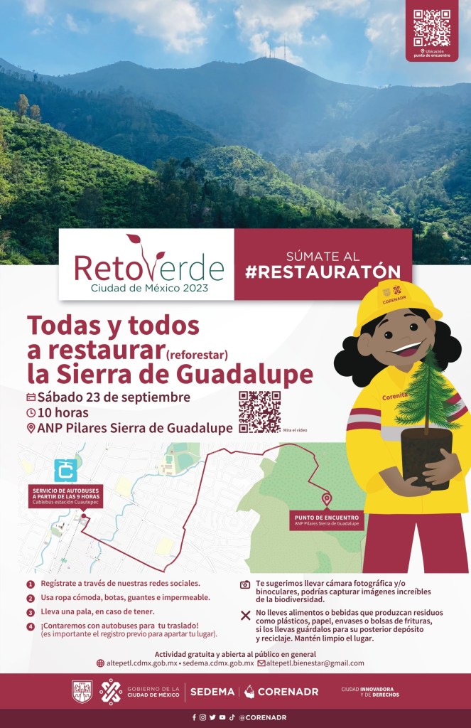 ¡Es tu oportunidad de actuar por el bien del planeta! Te esperamos en la Sierra de Guadalupe para hacer historia en el «Restauratón del Norte». ♦
