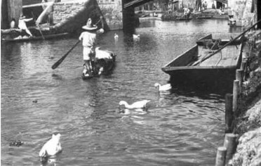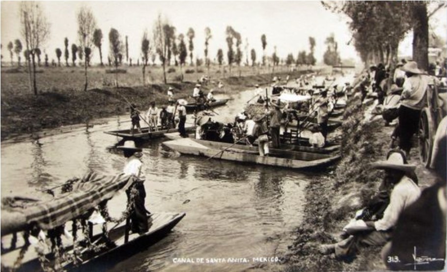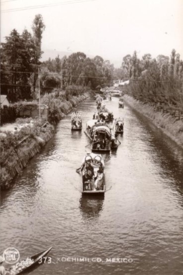 Esa imagen debió ser muy típica en el período que estamos estudiando, pues ya en el mural de Miguel Covarrubias se observa de un lado a los campesinos y del otro a los «catrines» que paseaban en las apacibles aguas de Xochimilco.