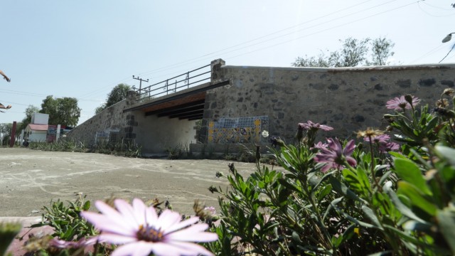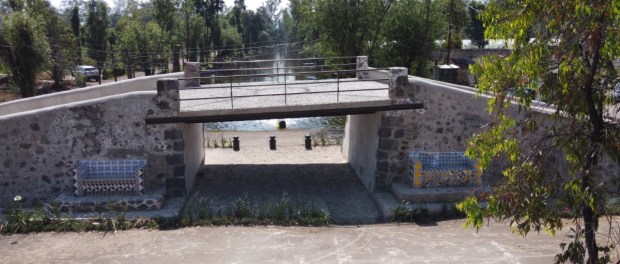 Este puente, que atraviesa el Canal de Apatlaco, uno de los más anchos de Xochimilco, está hecho de hierro y mampostería y posee una banca revestida con azulejos de Talavera. Sin embargo, había sido abandonado y deteriorado con el tiempo, y el canal se había reducido hasta desaparecer.