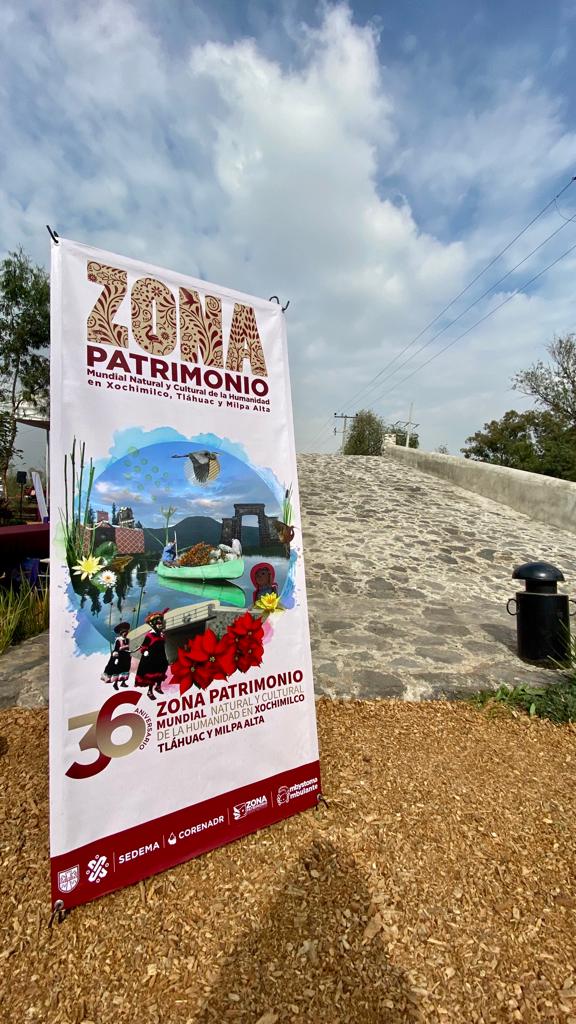 La inauguración de los trabajos de restauración del histórico monumento Puente de Urrutia formó parte de los festejos por el 36 aniversario de la inclusión de la Zona Lacustre de Xochimilco en la lista del Patrimonio Mundial de la Unesco. Ahí se dijo que el proyecto fue posible gracias a los recursos del programa Altépetl Bienestar de la Corenadr.