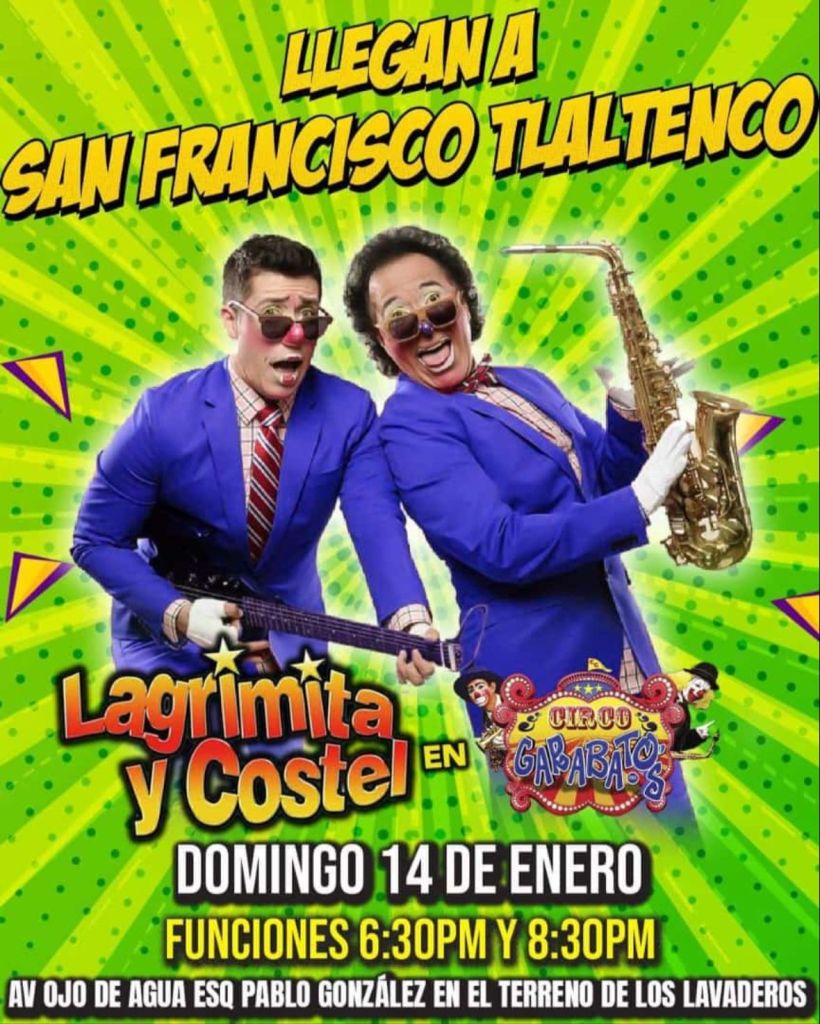 Las dos presentaciones del dúo serán en el Circo Garabatos, instalado en Avenida Ojo de Agua esquina Pablo González, para mejor referencia en el predio conocido como de los lavaderos, en San Francisco Tlaltenco, a las 18:30 y 20:30 horas.
