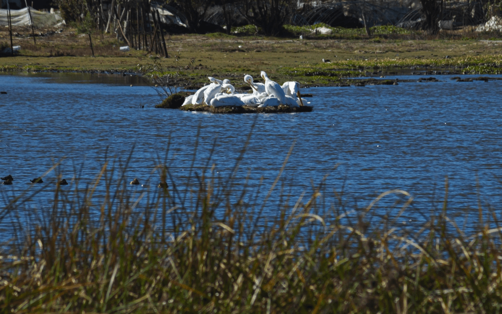 Una especie que cada año llega al ecosistema y cuerpos de agua de Tláhuac son los pelícanos blancos americanos, procedentes de las frías tierras de Estados Unidos y Canadá, en busca de aguas más cálidas y alimento para poder concluir su viaje en el Caribe.