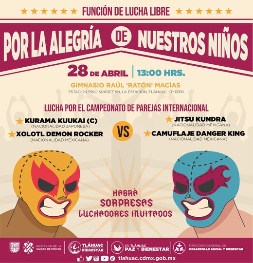 Para introducir a niñas y niños en el arte del pancracio y festejarlos en su día, la alcaldía Tláhuac organiza una función de lucha libre cuya jornada ha sido denominada «Por la alegría de nuestros niños».