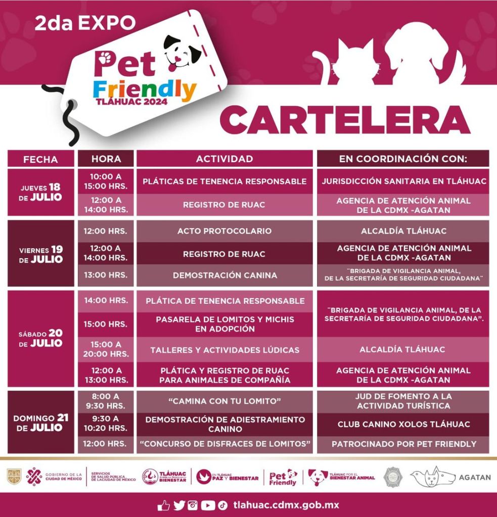 Con charlas informativas sobre la importancia de la esterilización, el adiestramiento y la activación física de nuestras mascotas, a cargo de colectivos especializados en protección animal, se llevará a cabo en el corazón de la Alcaldía Tláhuac la «Expo Pet Friendly Tláhuac 2024» en su segunda edición.