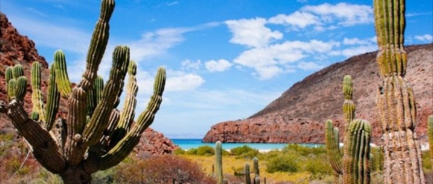 El desierto de Baja California Sur, rodeado de aguas oceánicas: el Pacífico y el Mar de Cortés, tiene una anchura promedio de 100 kilómetros y una longitud aproximada de 660 kilómetros, con un litoral de 2,200 kilómetros (20 por ciento del litoral nacional). Ubicado entre el Paralelo 23° y el Trópico de Cáncer en la franja de los grandes desiertos.