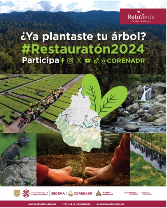 La Comisión de Recursos Naturales y Desarrollo Rural (Corenadr), de la Secretaría del Medio Ambiente capitalina, hace una cordial invitación a voluntarios, colectivos, ambientalistas, empresas y familias de la Alcaldía Tláhuac a participar en el «Reto Verde 2024».