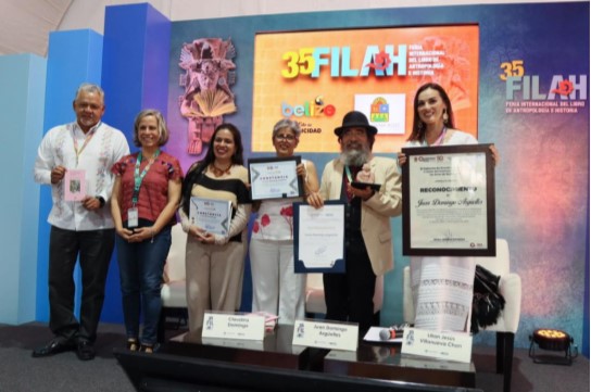 En el último día de actividades de la 35 Feria Internacional del Libro de Antropología e Historia, recibió una estatuilla y un documento que resalta la trayectoria del también lexicógrafo, de manos de la titular de la Coordinación Nacional de Difusión del INAH, Beatriz Quintanar Hinojosa; la directora del Instituto de la Cultura y las Artes de Quintana Roo, Lilian Jesús Villanueva Chan, y el director general del Instituto Geográfico y Catastral del Estado, Ricardo López Rivera.