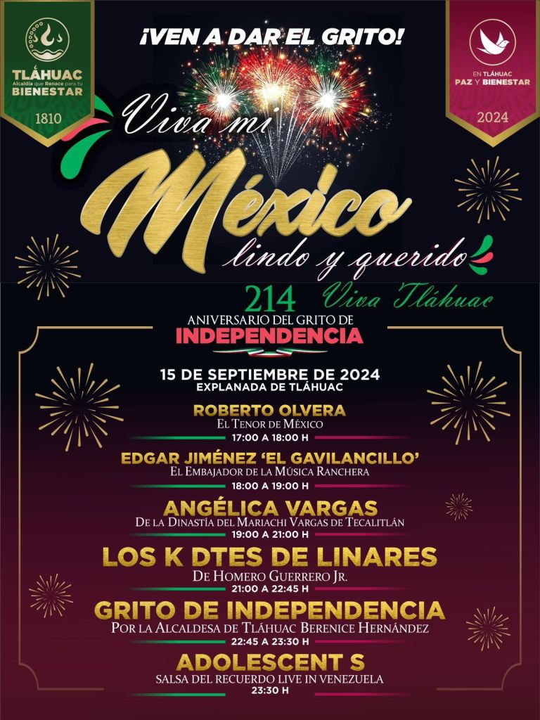 Con motivo del 214 aniversario del inicio de la Guerra de Independencia, la administración en Tláhuac que encabeza Berenice Hernández Calderón, ha preparado un gran programa conmemorativo que incluye actividades artísticas, musicales y culturales.