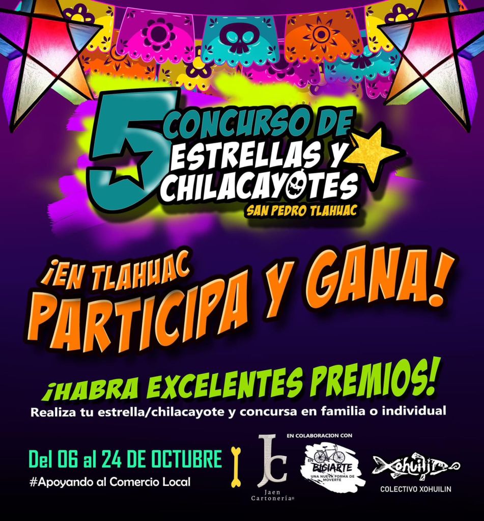 El colectivo Xohuilin Tláhuac, en colaboración con Bici~Arte y Jaén Cartonería, celebran la quinta edición del Concurso de Estrellas y Chilacayotes San Pedro Tláhuac, un evento que tiene como objetivo mantener vigentes las tradiciones de los pueblos originarios de la demarcación.