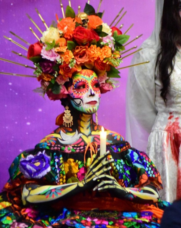 El evento estuvo amenizado por diversos colectivos culturales de la Alcaldía Tláhuac, quienes engalanaron el recinto con artesanías fabricadas de cartonería, catrinas y catrines, estrellas de carrizo y danzas prehispánicas.