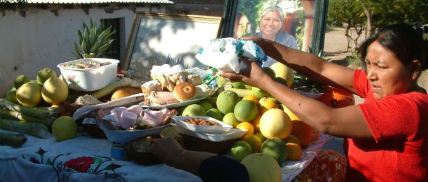 »Conforme se acerca el Día de Muertos se comienzan a poner los alimentos: fruta, dulces, bebidas, cigarros, para los últimos días de octubre los solares huelen a carbón ardiente. En el fogón ya humea el wakabaqui, un concentrado caldo de res con verduras que continuamente es meneado por las cocineras, con un largo cucharón de madera. Mientras tanto, otras mujeres hacen girar velozmente sobre sus antebrazos una elástica masa blanca que en cada vuelta va tomando la forma de un gran disco; ya listas, las tortillas de harina se colocan sobre un comal de barro, convexo, y se cuecen al calor del mineral encendido. También se preparan tamales, carne con chile y otras comidas propias de la región.
