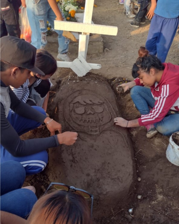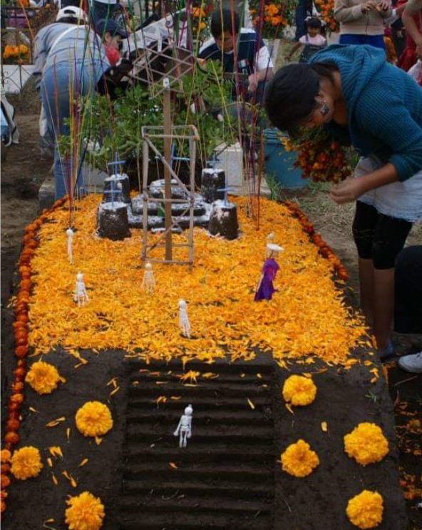 La tradición continúa en el pueblo de San Antonio Tecómitl, Alcaldía Milpa Alta, cuando los pobladores homenajean a sus difuntos con esculturas de lodo en sus tumbas, que incluyen diseños alusivos a calaveras, xoloitzcuintles, cruces, pan de muerto y dioses como Quetzalcóatl o Mictlantecuhtli.