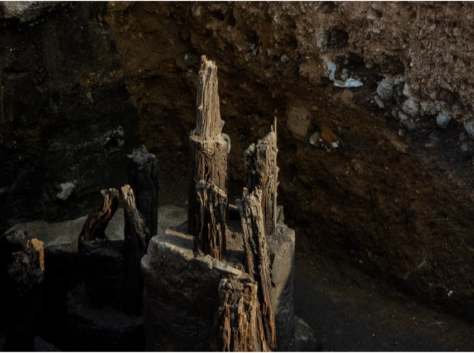 Bajo Av Chapultepec descubren restos de muelle y canal de época prehispánica